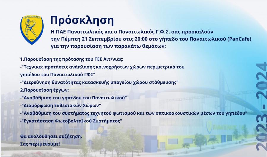 Η ανακοίνωση της ΠΑΕ Παναιτωλικός «Ο μεγαλομέτοχος της ΠΑΕ Παναιτωλικός Φώτης Κωστούλας, τα μέλη του Δ.Σ., τα στελέχη, το προσωπικό...