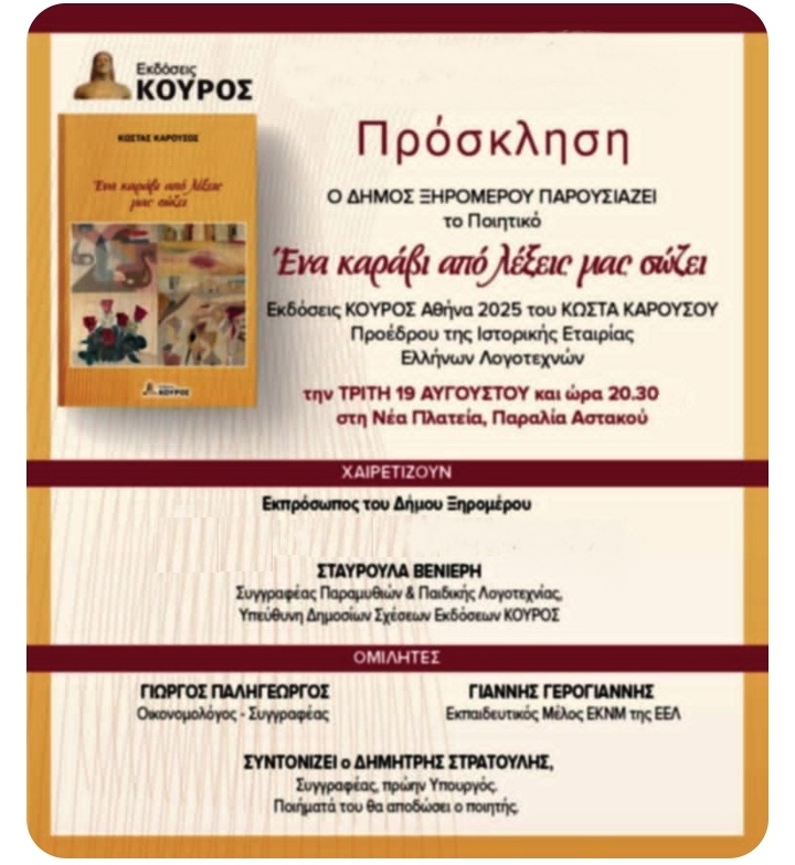 Ο ΔΗΜΟΣ ΞΗΡΟΜΕΡΟΥ ΠΑΡΟΥΣΙΑΖΕΙ το Ποιητικό: «Ένα καράβι από λέξεις μας σώζει».