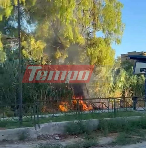 Φωτιά πριν λίγη ώρα στην περιοχή της Αγυιάς κάτω από το στάδιο της Παναχαϊκής, στις γραμμές του τρένου.