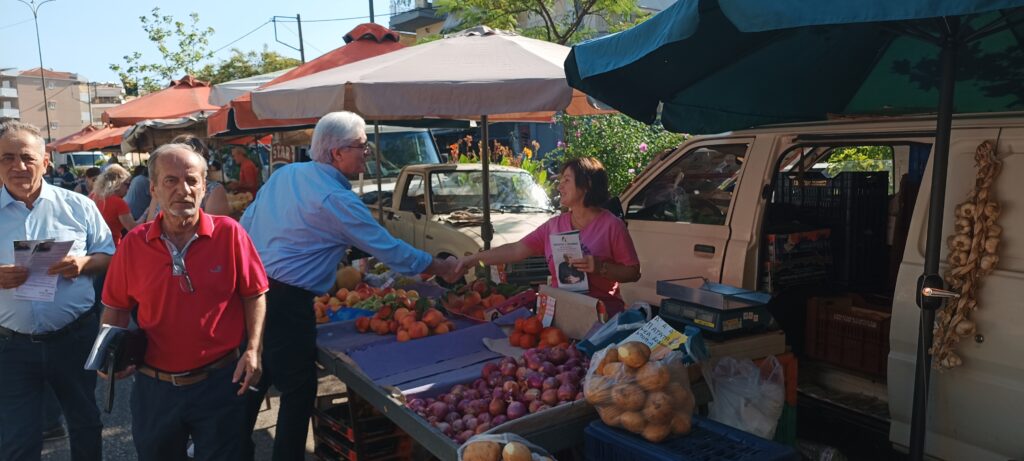 Σήμερα το πρωί επισκέφθηκαν την λαϊκή αγορά και τις γειτονιές του Αγίου Κωνσταντίνου και στην Ερυθραία , όπου έτυχαν θερμής υποδοχής από τους κατοίκους, άκουσαν τους πολίτες και συνομίλησαν μαζί τους για τα προβλήματα που βιώνουν στην καθημερινότητά τους και παρουσίασαν συνοπτικά τις προτάσεις του συνδυασμού για να ξεκολλήσει ΕΠΙΤΕΛΟΥΣ αυτός ο τόπος από το ΤΕΛΜΑ την ΥΣΤΕΡΗΣΗ και την ΥΠΟΒΑΘΜΙΣΗ.