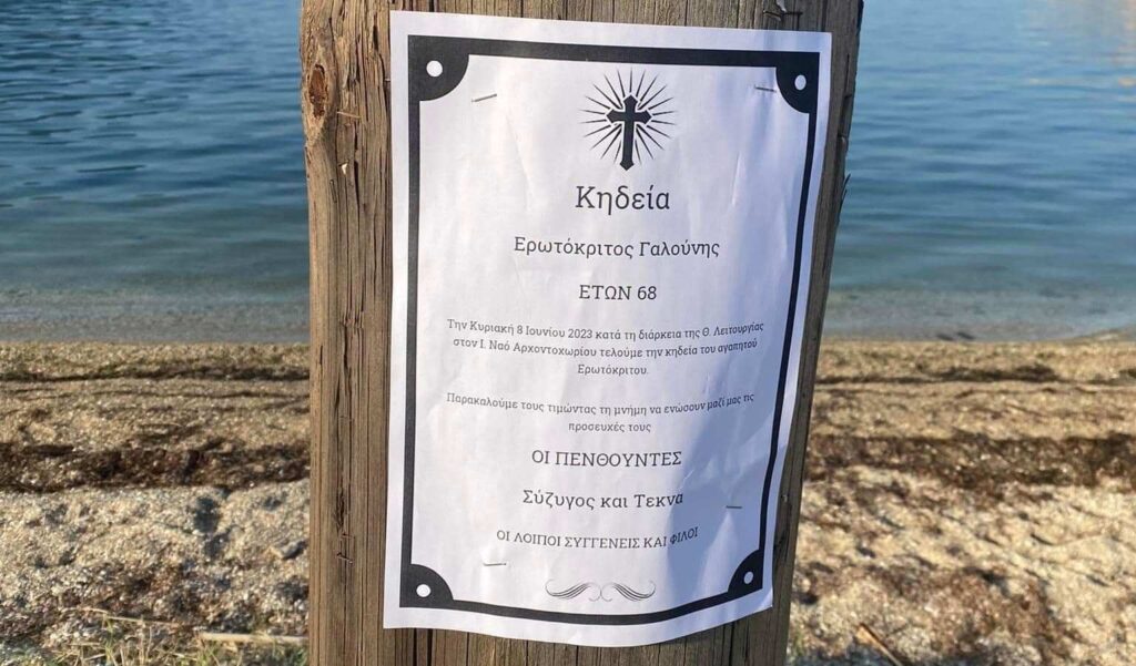Μάλιστα στο κηδειόχαρτο αναγραφόταν και ότι η κηδεία του πρώην δημάρχου και υποψήφιου στις δημοτικές εκλογές θα τελεστεί αύριο το πρωί στον Ιερό Ναό Αγίου Σπυρίδωνα Αρχοντοχωρίου.