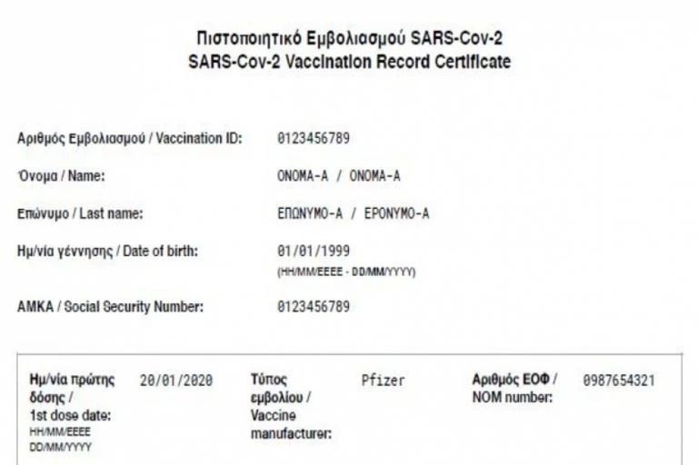 Πιστοποιητικό εμβολιασμού: Αυτό είναι το πιστοποιητικό, το οποίο θα παίρνουν οι πολίτες που θα έχουν ολοκληρώσει τον εμβολιασμό τους.