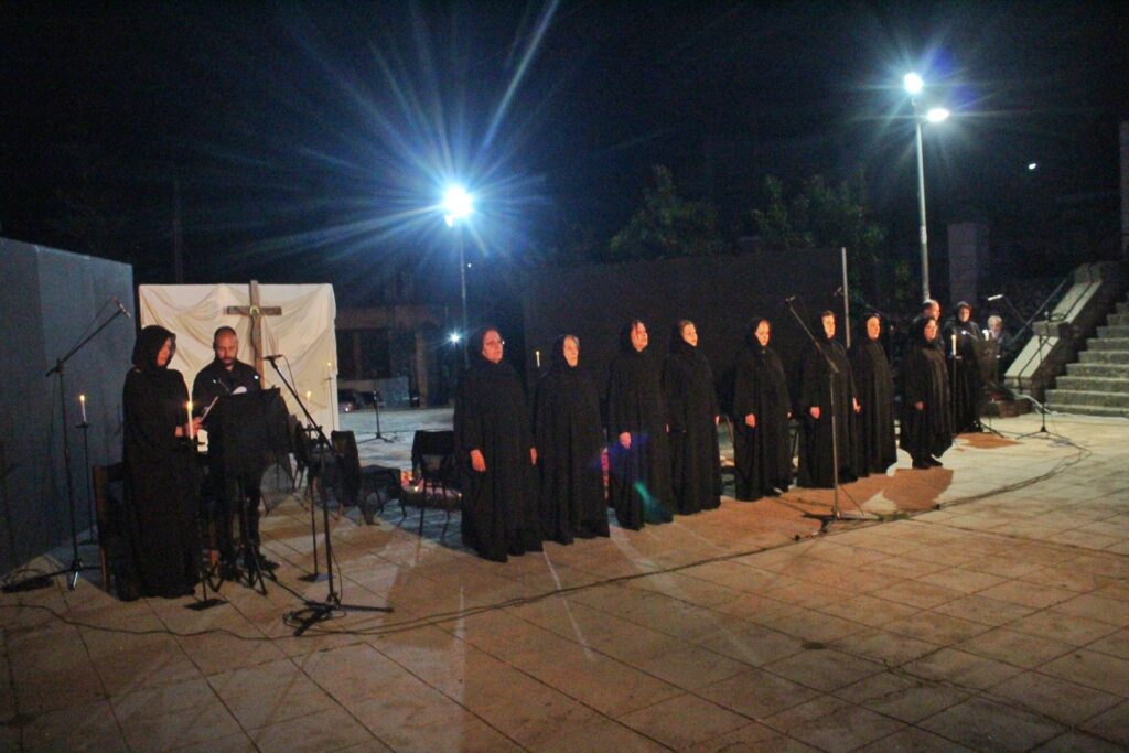 Μέσα σε κλίμα περισυλλογής και κατάνυξης οι θεατές παρακολούθησαν το θεατρικό δρώμενο “Θρήνον συνεκίνει…”, μια σπουδή πάνω στην έννοια Μάνα, που θρηνεί τον θάνατο του παιδιού της, που συνοδεύτηκε από ύμνους του Πάσχα από τους χορωδούς, ενδυναμώνοντας το θρησκευτικό μήνυμα των ημερών.