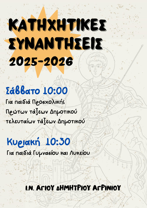 Πρόγραμμα κατηχητικών και νεανικών συναντήσεων Ι.Ν. Αγίου Δημητρίου Αγρινίου