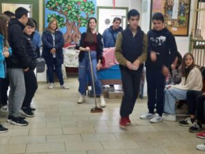 • Στη συνέχεια, οι μαθητές συμμετείχαν σε παιχνίδια  που κατασκευάστηκαν στο ΕΝ.Ε.Ε.ΓΥ.Λ. Αγρινίου όπως: ποδοσφαιράκι και γκολφ. Επίσης, οι μαθητές έπαιξαν σκοινάκι (διελκυστίνδα, όπως είναι το αρχαίο όνομα), μαντιλάκι και τσουβαλοδρομίες.