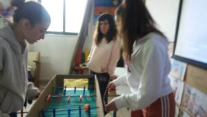 • Στη συνέχεια, οι μαθητές συμμετείχαν σε παιχνίδια  που κατασκευάστηκαν στο ΕΝ.Ε.Ε.ΓΥ.Λ. Αγρινίου όπως: ποδοσφαιράκι και γκολφ. Επίσης, οι μαθητές έπαιξαν σκοινάκι (διελκυστίνδα, όπως είναι το αρχαίο όνομα), μαντιλάκι και τσουβαλοδρομίες.