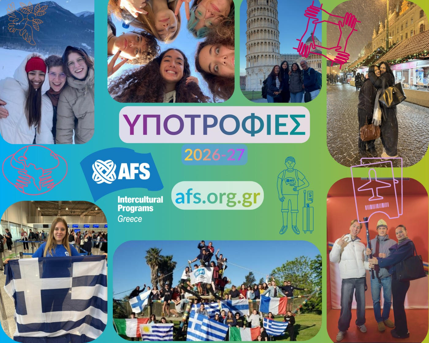 Για μια ακόμη χρονιά, ο Μη Κυβερνητικός και Μη Κερδοσκοπικός οργανισμός AFS Intercultural Programs Greece & Cyprus προσφέρει τη δυνατότητα σε μαθητές Λυκείου από την Ελλάδα και την Κύπρο να συμμετάσχουν σε προγράμματα ανταλλαγής μαθητών για ένα σχολικό έτος στο εξωτερικό διεκδικώντας υποτροφία.