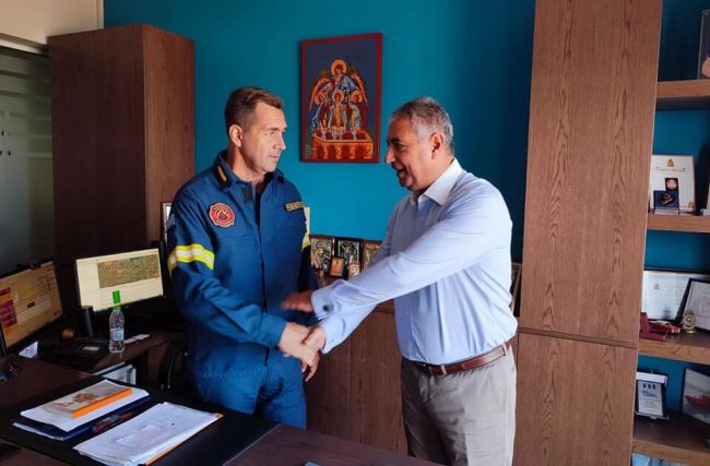 Τον Περιφερειακό Διοικητή Πυροσβεστικής Υπηρεσίας Δυτικής Ελλάδος Νίκο Ρουμελιώτη επισκέφθηκε το πρωί της Παρασκευής στο γραφείο του, ο Διοικητής της 6ης ΥΠΕ Γιάννης Καρβέλης με αφορμή την προσφορά της 6ης ΥΠΕ σε υγειονομικό και φαρμακευτικό υλικό στη διάθεση της υπηρεσίας. Ο κ. Καρβέλης, παράλληλα, επισκέφθηκε το κέντρο επιχειρήσεων της Πυροσβεστικής Υπηρεσίας όπου συζήτησε με τα στελέχη της, τη διεύρυνση της βάσης συνεργασίας που υπάρχει μέχρι σήμερα. Στις δηλώσεις του ο κ. Καρβέλης, διαβεβαίωσε ότι η προσφορά της 6ης ΥΠΕ προς την Πυροσβεστική Υπηρεσία θα συνεχιστεί κατά το δυνατό. Με τη σειρά του ο κ. Ρουμελιώτης ευχαρίστησε θερμά τον κ. Καρβέλη, τονίζοντας ότι ο Διοικητής της 6ης ΥΠΕ βρίσκεται πάντα στην πρώτη γραμμή βοήθειας όταν οι συνθήκες το απαιτούν, τόσο για το κοινωνικό σύνολο, όσο και για τους πυροσβέστες που επιχειρούν κάτω από δύσκολες συνθήκες.