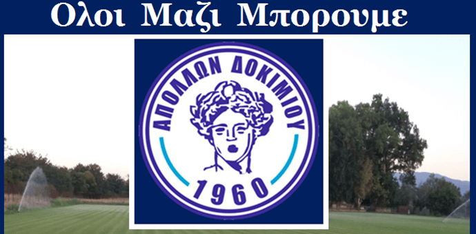 Το Δ.Σ και ο προπονητής Θ.ΛΑΥΡΑΝΟΣ καλούν τους ποδοσφαιριστες της Ομάδας ,τους φίλους,τους παλαίμαχους τους ,παλιούς και νέους παράγοντες και όλους φορείς να παρευρεθούν στο ΔΗΜΟΤΙΚΟ ΓΗΠΕΔΟ Τ.Κ. ΔΟΚΙΜΙΟΥ (ΛΕΩΝΙΔΑΣ ΖΑΧΑΡΑΚΗΣ) στη Πρώτη της Ομαδας μας.