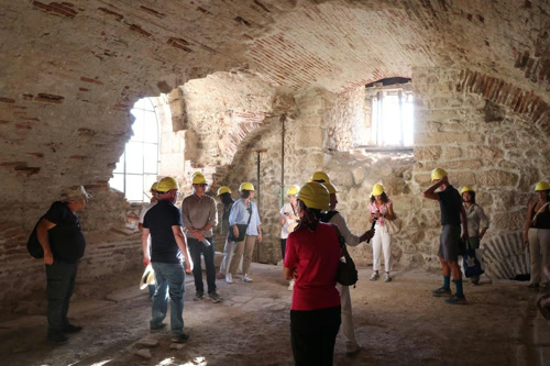 Επισκέπτες ξεναγούνται στο θολωτό εσωτερικό του αρχαίου λουτρού στη διάρκεια των αδιάλειπτων ανασκαφών στη Σαλαγασσό.