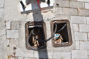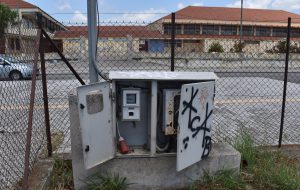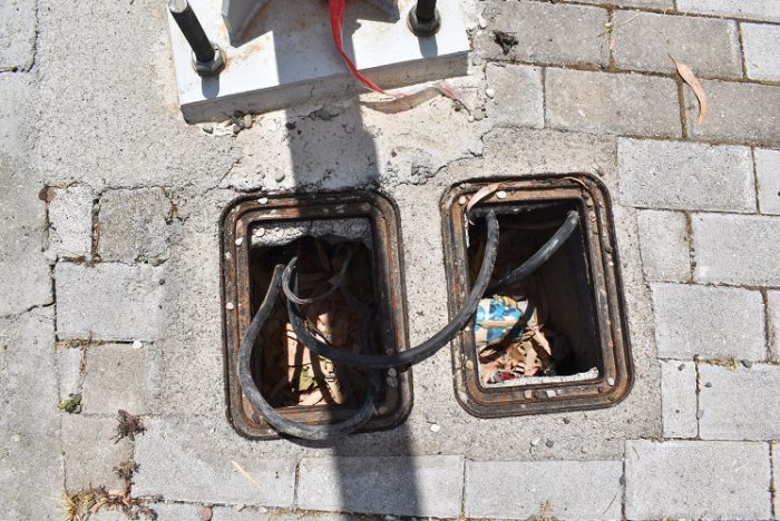Η πόρτα του κεντρικού πίνακα ηλεκτροδότησης παραβιάστηκε και από το εσωτερικό αφαιρέθηκαν σχεδόν τα πάντα ενώ και το σύνολο των καλωδιώσεων είχε αφαιρεθεί από τους ειδικούς αγωγούς.