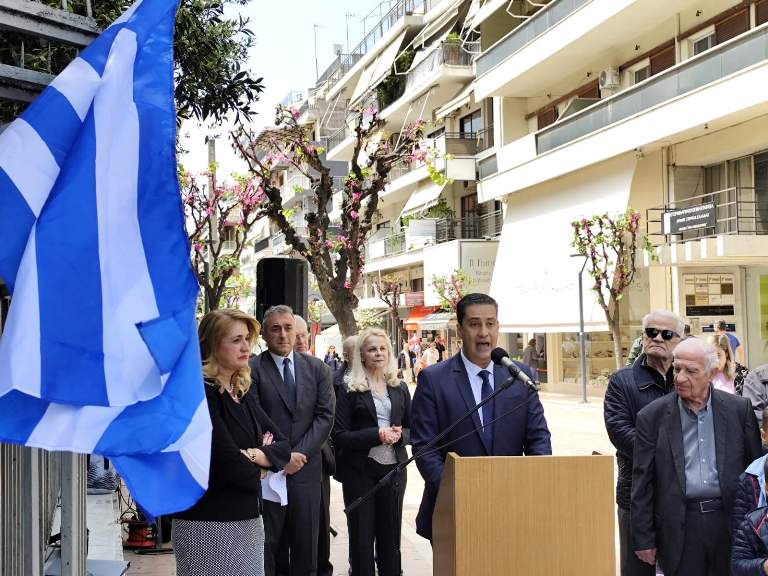 Ο Γιώργος Παπαναστασίου στον χαιρετισμό υπογράμμισε τον ηρωισμό των συμπατριωτών μας: «Ογδόντα τέσσερα χρόνια μετά στεκόμαστε μπροστά στα σημάδια ενός ματωμένου πρωινού. Η οδός Αναστασιάδη είναι η οδός των δικών μας ηρώων. Των 12 άμαχων συμπατριωτών μας που έπεσαν θύματα τυφλού χτυπήματος των Ναζί επιδρομέων. Στεκόμαστε με δέος μπροστά στον τόπο της θυσίας. Δεν πρέπει να ξεχάσουμε το μίσος και την μισαλλοδοξία των Γερμανών κατακτητών. Είναι χρέος ηθικό, όχι μόνο απέναντι στον ελληνικό λαό, αλλά απέναντι στα εκατομμύρια θύματα του ναζισμού».