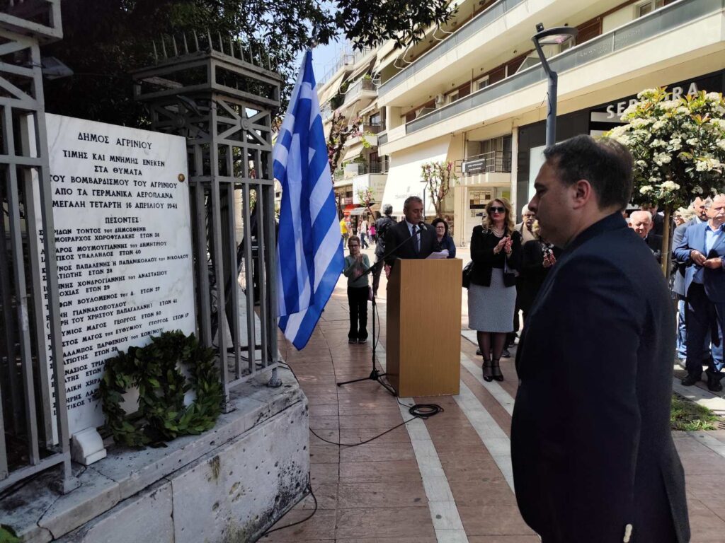 Γιατί ποτέ δεν πρέπει να ξεχνάμε το σκοτεινό του πρόσωπο και το τι πράξανε εις βάρος και του Ελληνισμού, αλλά και όλης της Ανθρωπότητας….για να μην ξαναυπάρξει ποτέ πιθανότητα να ” αναστηθεί” με οποιονδήποτε τρόπο ούτε ένα ” παρακλάδι ” του ,” πλοκάμι ” του στο σήμερα. Αγαπητοί συμπολίτες ήταν η ανάγνωση της πολύπαθους ιστορίας του Ελληνισμού και σε αυτήν την πόλη, το Αγρίνιο, τον Απρίλιο του 1941, που είδε να κόβεται στα δύο η εικόνα του κόσμου της και το ” χαλκεον χέρι” του κατακτητή να της στερεί όλα τα χρώματα της ζωής της, που χωνεύτηκαν από το μαύρο του καπνού και το κόκκινο του αίματος των αθώων! Και στο χρόνο της ιστορίας, τα πάντα μένουν και πλανώνται γύρω μας ,συμβολικά και αποκτούν κάθε στιγμή όποια μνήμη τους αποδίδεται και ο,τι ιστορική – συναισθηματική αποκωδικοποίηση τους γίνεται…..Μνημονεύουμε ,τιμούμε ,διδασκόμαστε και δεν ξεχνούμε ποτέ τι σημαίνει ο πόλεμος και η Βαρβαρότητα Ευχή να υπάρχει πάντα Ειρήνη, Ελευθερία και Δημοκρατία και να περιφρουρούμε με κάθε τρόπο την ύπαρξη τους. Αιώνια σας η μνήμη!».