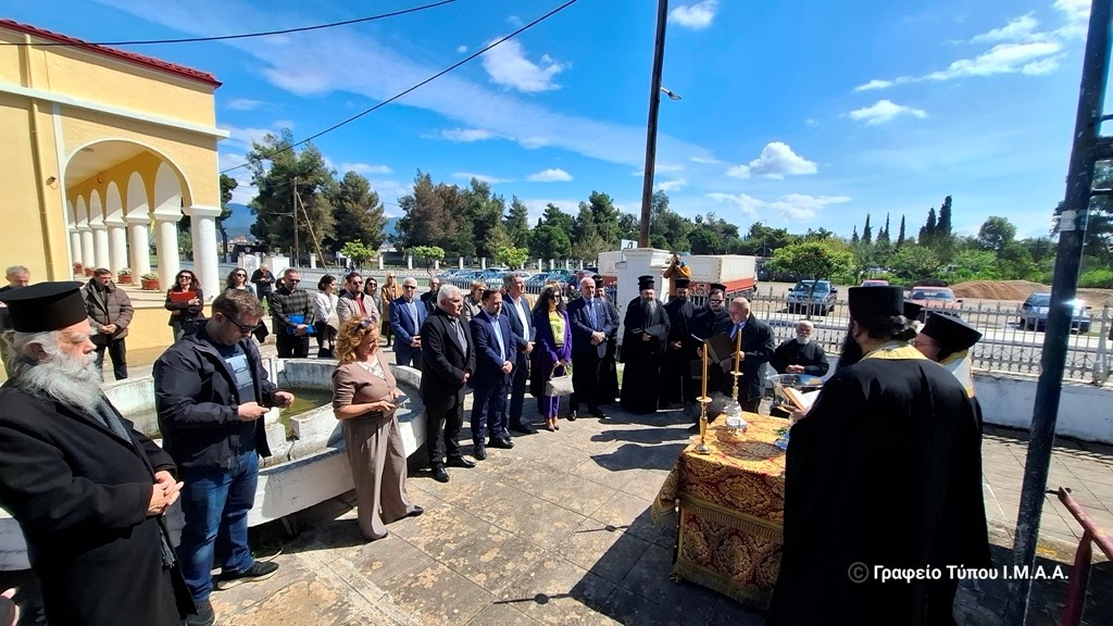 Την Ακολουθία τέλεσε ο Σεβασμιώτατος Μητροπολίτης Αιτωλίας και Ακαρνανίας κ. Δαμασκηνός στον περιβάλλοντα χώρο του Επισκοπείου. Παρέστησαν Κλιμάκιο του Υπουργείου Πολιτισμού, Κλιμάκιο της Ειδικής Υπηρεσίας Διαχείρισης Π.Δ.Ε., Εκπρόσωποι της Διεύθυνσης Προστασίας και Αναστήλωσης Νεώτερων και Σύγχρονων Μνημείων, ο Ανάδοχος του Έργου, Μηχανικός κ. Δημήτριος Αναγνωστόπουλος, η Μελετήτρια κα Δήμητρα Γουργιώτη, ο Ιερός Κλήρος της Ιεράς Πόλεως, με επικεφαλής τον Πρωτοσύγκελλο, Αρχιμ. Θεόκλητο Ράπτη και τον Γενικό Αρχιερατικό Επίτροπο, Αρχιμ. Ιωσήφ Ζωγράφο, οι εργαζόμενοι στα Γραφεία της Ιεράς Μητροπόλεως και εκπρόσωποι Συλλόγων και Φορέων της Ιεράς Πόλεως.