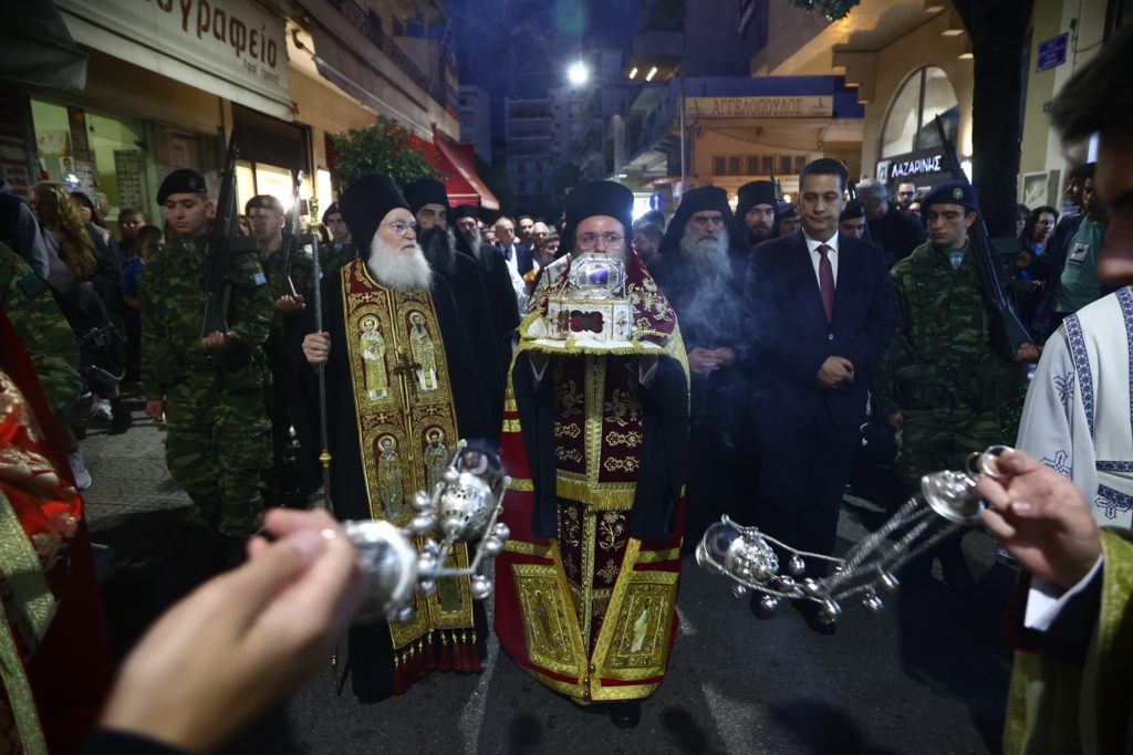 Σε πανηγυρικό κλίμα το Αγρίνιο υποδέχθηκε την Τιμία Κάρα του Αγίου Ιωάννου του Χρυσοστόμου από την Ιερά Μεγίστη Μονή Βατοπαιδίου