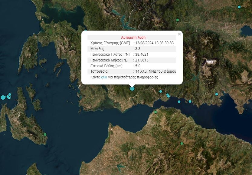 Σεισμός 3,3 βαθμών της κλίμακας Ρίχτερ σημειώθηκε στην Αιτωλοακαρνανία.