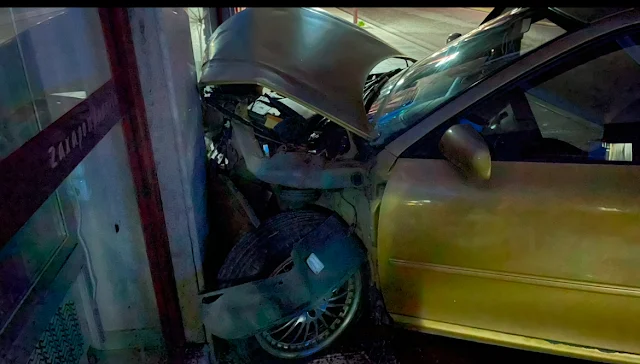 Ιδιωτικής χρήσης επιβατικό όχημα (Ι.Χ.Ε.) ξέφυγε από την πορεία του και προσέκρουσε με μεγάλη ταχύτητα σε πρόσοψη καταστήματος. Παρά τη σφοδρότητα της σύγκρουσης, ευτυχώς δεν υπήρξαν τραυματισμοί. Η οδηγός κατάφερε να βγει σώος, ενώ το όχημα υπέστη ολοκληρωτική καταστροφή.