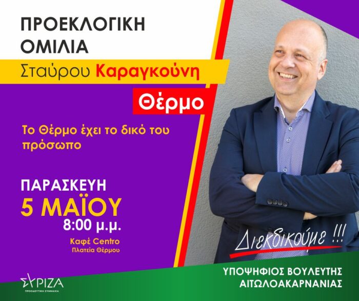 Σήμερα η ομιλία Σταύρου Καραγκούνη στο Θέρμο