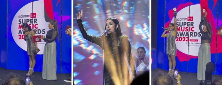 Ανέβηκε στη σκηνή των βραβείων και από το πρώτο δευτερόλεπτο λύγισε από συγκίνηση , ξέσπασε σε κλάματα και το κοινό όρθιο την χειροκρότησε, για την μοναδική στιγμή, που χάρισε στα ECOMMBX Super Music Awards 2023