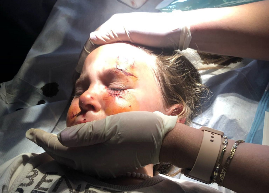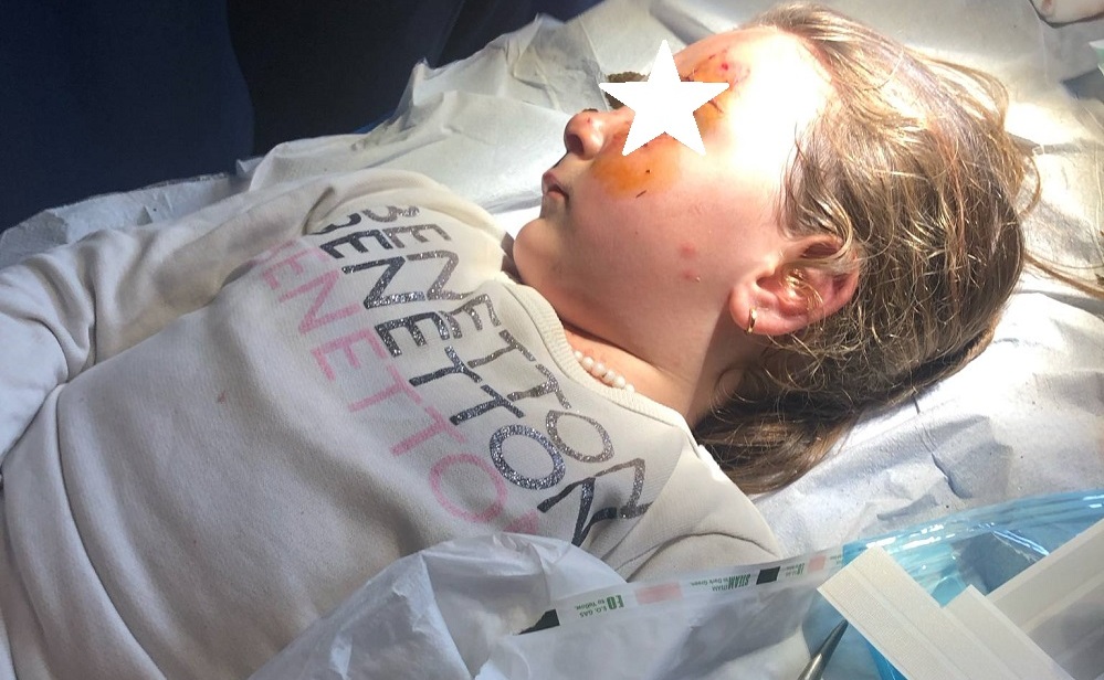 Εσπευσμένα το κοριτσάκι που ήταν σοκαρισμένο, μεταφέρθηκε στα Επείγοντα του Νοσοκομείο Αγρινίου, όπου εκεί η γιατροί και το νοσηλευτικό προσωπικό, του πρόσφεραν τις πρώτες βοήθειες και του έκαναν ράμματα και αντιλυσσικό εμβόλιο. Έφερε τραύματα και γρατζουνιές, στο κεφάλι, στη μύτη, στα χέρια και σε άλλα σημεία του σώματός του. Νοσηλεύτηκε για μερικές ώρες και στη συνέχεια επέστρεψε στο σπίτι του, με το παιδί να είναι ακόμη είναι πολύ φοβισμένο από αυτό που βίωσε.
