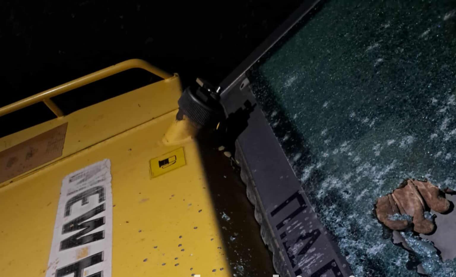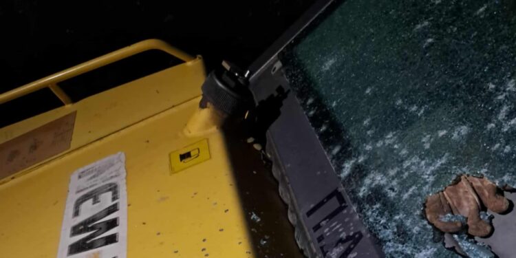 Το μηχάνημα, το οποίο ήταν σταθμευμένο και εκτός λειτουργίας, είχε μεταφερθεί στο σημείο ενόψει έργων που επρόκειτο να ξεκινήσουν την Πέμπτη 9 Οκτωβρίου. Από τους πυροβολισμούς προκλήθηκαν ζημιές στο παρμπρίζ, χωρίς να υπάρξουν τραυματισμοί.