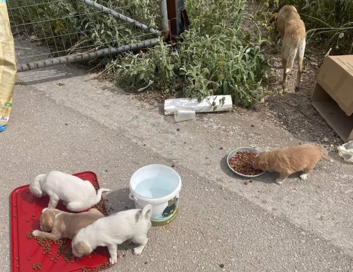 Η εθελόντρια του Δήμου πήρε τη μαμά και τα μωρά της με κύριο μέλημα τη φροντίδα της οικογένειας που παράτησαν με ένα μπουκάλι γάλα δίπλα… και συγχρόνως έψαχνε να φιλοξενία γιατί παρά τα όσα έχουν ειπωθεί, δεν υπάρχει όχι χώρος αλλά ούτε μια γωνία για να στριμωχτούν.