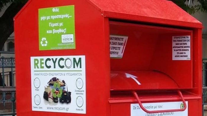 Οι κόκκινοι κάδοι ανακύκλωσης για μεταχειρισμένα ρούχα και παπούτσια θα τοποθετηθούν σε κεντρικά σημεία του Θέρμου τους επόμενους μήνες στο πλαίσιο των ενεργειών που υλοποιεί ο δήμος για την προώθηση της ανακύκλωσης στην περιοχή και τη συμβολή των δημοτών σε δράσεις για την προστασία του περιβάλλοντος.