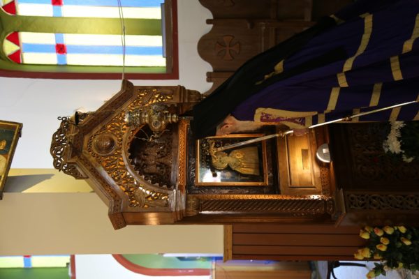 Στο τέλος της θείας Λειτουργίας ο Σεβασμιώτατος μνημόνευσε τον αείμνηστο π. Αθανάσιο Δρόσο που κράτησε την Εκκλησία ανοικτή για πολλά χρόνια και άφησε μνήμη αγαθού λευίτη και ευχαρίστησε τον νυν Εφημέριο π. Ιωάννη Χαμηλό, και στο πρόσωπό του όλους τους Ιερείς της Μητροπόλεως και ιδιαιτέρως της Ορεινής Ναυπακτίας. Ευχαρίστησε επίσης τους Εκκλησιαστικούς Συμβούλους, και όσους υπηρετούν σήμερα και της προηγούμενης θητείας, για την μεγάλη αγάπη και φροντίδα στην Ενορία τους, και ευχαρίστησε όλους τους κατοίκους του χωριού για την ευσέβειά τους και τους ευχήθηκε με την ευχή του αγίου Καλλινίκου Εδέσσης: «να έχετε του Αβραάμ, του Ισαάκ και του Ιακώβ τα αγαθά».