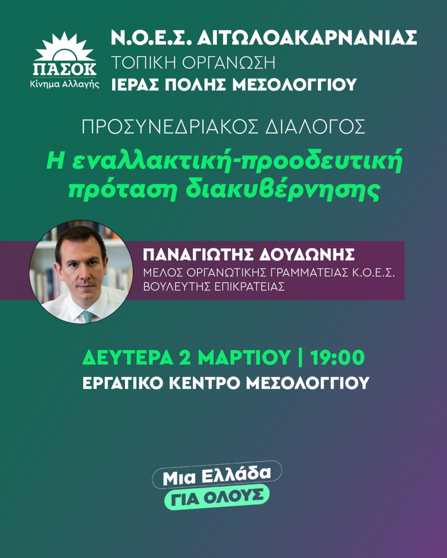 αντικείμενο την εναλλακτική-προοδευτική πρόταση διακυβέρνησης του ΠΑΣΟΚ.