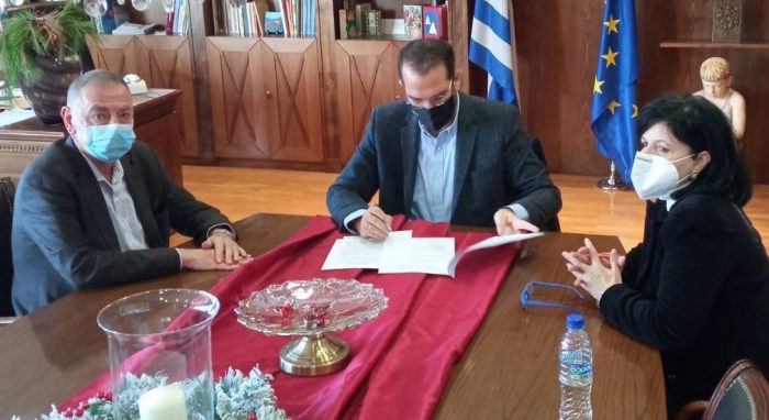 Στην υπογραφή σύμβασης μεταξύ της Περιφέρειας Δυτικής Ελλάδας και του Επιμελητηρίου Αχαΐας προχώρησαν σήμερα, Παρασκευή 18 Δεκεμβρίου 2020, ο Περιφερειάρχης, Νεκτάριος Φαρμάκης, η Αντιπεριφερειάρχης Π.Ε. Αιτωλοακαρνανίας, Μαρία Σαλμά και ο Πρόεδρος του Επιμελητηρίου, Παναγιώτης Τσιχριτζής.