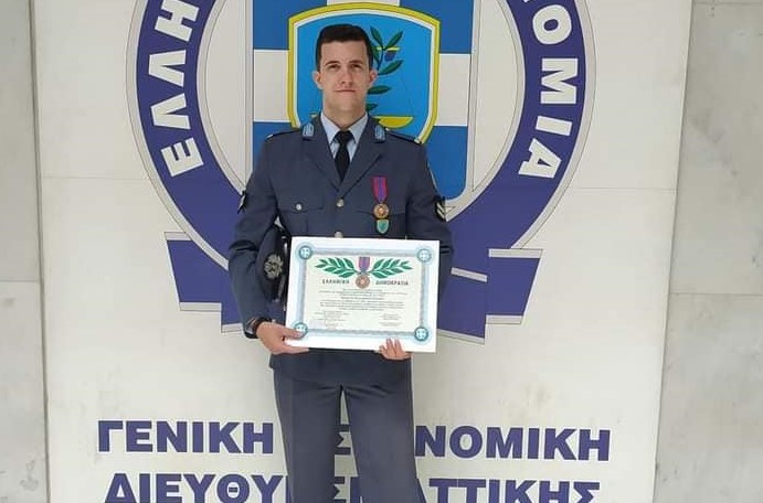 Τα Μετάλλια «Αστυνομικός Σταυρός» απονεμήθηκαν μετά την έκδοση σχετικών Προεδρικών Διαταγμάτων, τα οποία αναγνώσθηκαν κατά τη διάρκεια της εκδήλωσης και ανάμεσα στους τιμώμενους αστυνομικούς ήταν και ο Αγρινιώτης Υπαρχιφύλακας ΚΟΝΤΟΥΡΗΣ Νικόλαος του Στυλιανού, (γιος συναδέλφου μας που πρόσφατα συνταξιοδοτήθηκε) που υπηρετεί στη Διεύθυνση Άμεσης Δράσης Αττικής, για τη δραστηριότητα που επέδειξε την 23-7-2018, όταν εκτελώντας διατεταγμένη υπηρεσία και κατόπιν εντολής του Κέντρου Άμεσης Δράσης, μετέβηκε στις περιοχές Ν. Βουτζά και Διώνη Αττικής, διότι είχε ξεσπάσει μεγάλης έκτασης πυρκαγιά, για να συνδράμουν στον απεγκλωβισμό ατόμων, θέτοντας σε κίνδυνο τη σωματική τους ακεραιότητα.