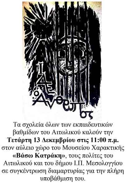 Eπίσης συγκέντρωση διαμαρτυρίας θα πραγματοποιήσουν και σχολεία του Αιτωλικού την Τετάρτη