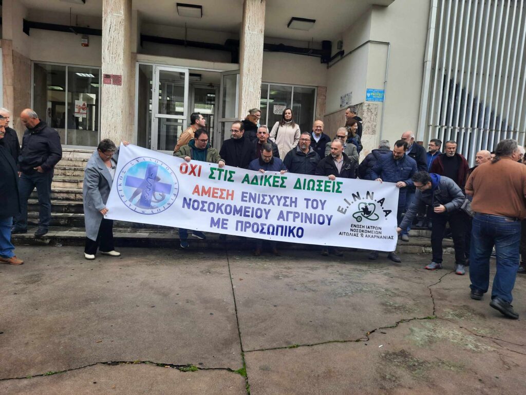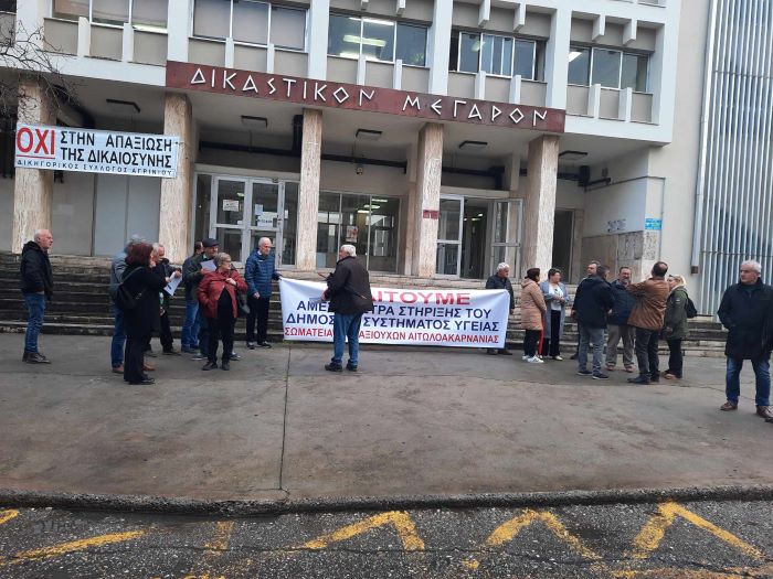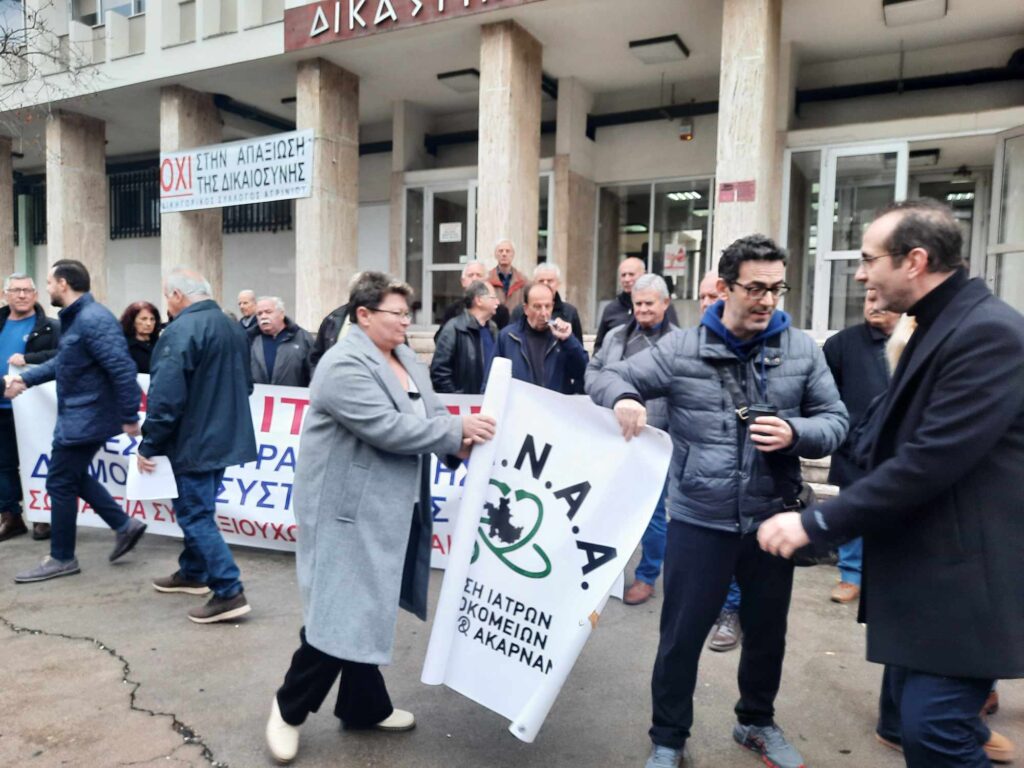 Συγκέντρωση έξω από τα δικαστήρια στο Αγρίνιο πραγματοποιούν αυτή την ώρα σήμερα, Πέμπτη 22-2-2024 για τη στήριξη των Ιατρών που διώκονται (Ηλεκτρονική συνταγογράφηση εξετάσεων στα ΤΕΠ). Η δίκη λόγω της αποχής των δικηγόρων πήρε αναβολή όμως εργαζόμενοι του Νοσοκομείου, ο Ιατρικός Σύλλογος Αγρινίου και άλλοι φορείς διαμαρτύρονται έντονα για την ταλαιπωρία την οποία υφίστανται οι γιατροί χωρίς να ευθύνονται, όπως λένε Θυμίζουμε ότι πρόκειται για 200 γιατρούς που αντιμετωπίζουν κατηγορίες για παράβαση καθήκοντος κατ΄εξακολούθηση για την μη ηλεκτρονική συνταγογράφηση εξετάσεων στο Τμήμα Επειγόντων Περιστατικών του Νοσοκομείου Αγρινίου. Αφορά το χρονικό διάστημα από το 2018 έως το 2021 για το σύνολο των γιατρών που υπηρέτησαν στο Τμήμα Επειγόντων Περιστατικών του Νοσοκομείου Αγρινίου.