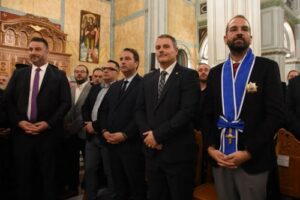 Στο πλαίσιο της τελετής, ο Σεβασμιώτατος Μητροπολίτης Αιτωλίας και Ακαρνανίας απένειμε στον Περιφερειάρχη Δυτικής Ελλάδας κ. Νεκτάριο Φαρμάκη την Ανώτατη Τιμητική Διάκριση της Ιεράς Μητροπόλεως, τον Χρυσούν Σταυρό μετά Μεταλλίου, σε αναγνώριση της ουσιαστικής συμβολής του στην ανακαίνιση του Ναού καθώς και της σταθερής υποστήριξής του σε σημαντικά έργα στην περιοχή.