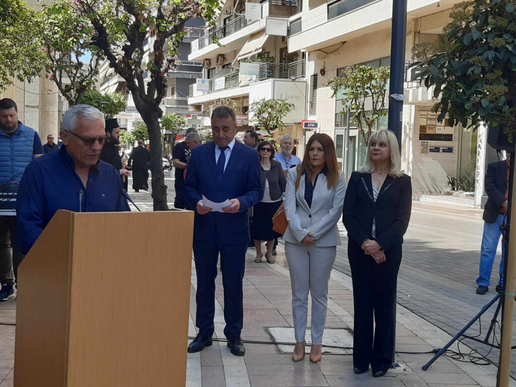 Στεφάνι κατέθεσαν ο Αντιδήμαρχος Ιωάννης Φαρμάκης,ο Αστυνομικός Διευθυντής Δ.Γαλαζούλας η εκπρ. Ένωσης Αποστράτων Αξιωματικών Αλίκη Σταμούλη, ο πρόεδρος του Συνδέσμου Αποστρτάτων Σωμάτων Ασφάλειας Δημήτριος Τσούνης, εκπρόσωποι των οικογενειών Μουμουγιάννη, Τόντου, Λαμπράκη.