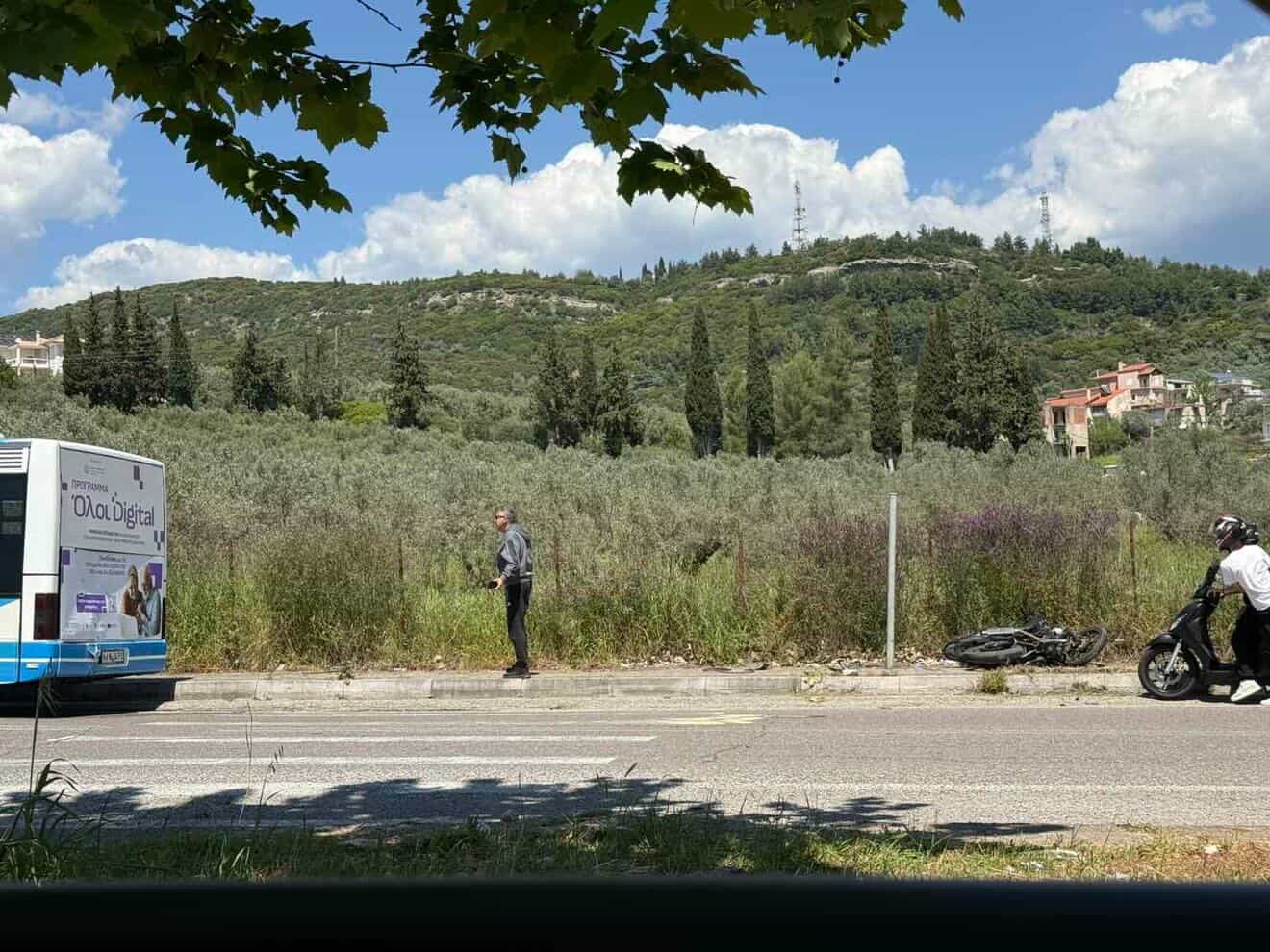 Σύμφωνα με τις πρώτες πληροφορίες, μοτοσικλέτα που κινούνταν στην περιοχή προσέκρουσε στο πίσω μέρος προπορευόμενου λεωφορείου, το οποίο κατευθυνόταν προς το Πολυκλαδικό συγκρότημα για την παραλαβή μαθητών.