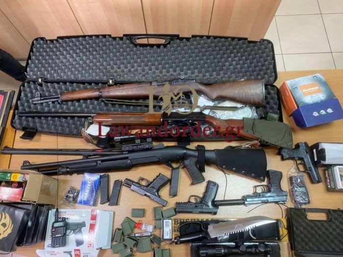 Στην κατοχή του άνδρα., όπως φαίνεται στις φωτογραφίες που εξασφάλισε το L&O, εντοπίστηκαν μεταξύ άλλων, ένα 9αρι πιστόλι με αλλοιωμένο τον σειριακό αριθμό, ένα πολεμικό τυφέκιο Μ1, τρεις καραμπίνες, ένα αλεξίσφαιρο γιλέκο και πλήθος από σφαίρες διαφόρων διαμετρημάτων