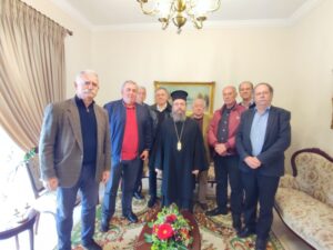 Στη συνέχεια τον Μητροπολίτη Αιτωλίας και Ακαρνανίας κ. Δαμασκηνό επισκέφθηκαν το Δ. Σ. του Πανελληνίου Συλλόγου Ορθοδόξου Ιεραποστολής «Ο Άγιος Κοσμάς ο Αιτωλός», αποτελούμενο από τον Πρόεδρο κ. Σπυρίδωνα Παπαθανασίου και τα Μέλη κ. Φώτιο Μάλαινο, κ. Νικόλαο Καζαντζή, κ. Κωνσταντίνο Τσακανίκα, κ. Κώστα Ξευγένη και κ. Νικόλαο Λουκά.