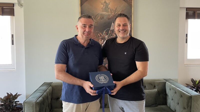 Τον Πρόεδρο της Πανελλήνιας Ομοσπονδίας Ενώσεων Συντακτών Σωτήρη Τριανταφύλλου υποδέχθηκε στο γραφείο του ο Δήμαρχος Ιερής Πόλης Μεσολογγίου Σπύρος Διαμαντόπουλος σήμερα Παρασκευή, 23 Αυγούστου 2024.