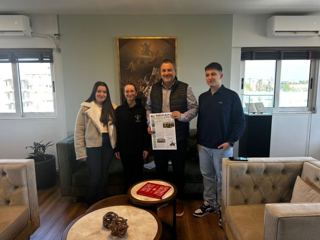 Μαθητές της Πολιτιστικής Ομάδας του 5ου Λυκείου Πατρών επισκέφθηκαν σήμερα, 2 Μαρτίου 2026, το Δήμαρχο της Ιεράς Πόλεως Μεσολογγίου κ. Σπυρίδωνα Διαμαντόπουλο. Η επίσκεψη έγινε με αφορμή συνέντευξη που ζήτησαν από το Δήμαρχο, για τη σχολική τους εφημερίδα με τίτλο «Κοινωνία Μαθητική».