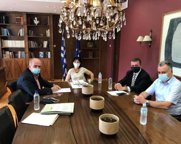Τον Γενικό Γραμματέα του Υπουργείου Εσωτερικών Μιχάλη Σταυριανουδάκη υποδέχθηκαν σήμερα στην έδρα της Π.Ε. Αιτωλοακαρνανίας στο Μεσολόγγι, ο Περιφερειάρχης Δυτικής Ελλάδας, Νεκτάριος Φαρμάκης και η Αντιπεριφερειάρχης, Μαρία Σαλμά.