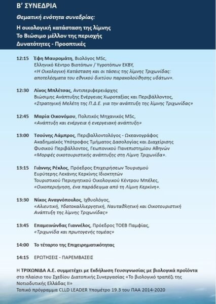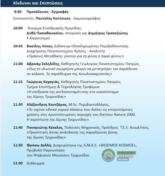 «Τριχωνίδα. Το βιώσιμο μέλλον της περιοχής»την Κυριακή 18 Μαΐου 2025, και ώρα 10:00 π.μ. στο Αγρίνιο, αίθουσα εκδηλώσεων του Τ.Ε.Ε. (Π.Σούλου 11).