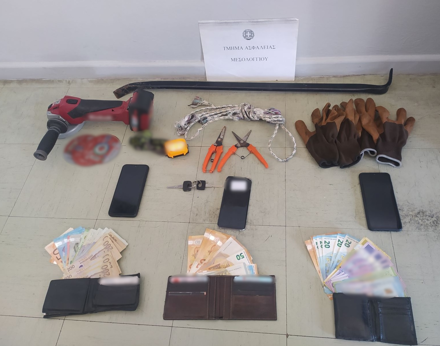 Σε σωματικές έρευνες που ενήργησαν οι αστυνομικοί στους τρεις συλληφθέντες βρήκαν στη κατοχή τους και κατέσχεσαν το χρηματικό ποσό των (1.060) ευρώ, (48.600) χαρτονομίσματα εξωτερικού,  τρία κινητά τηλέφωνα και μια κάρτα sim.