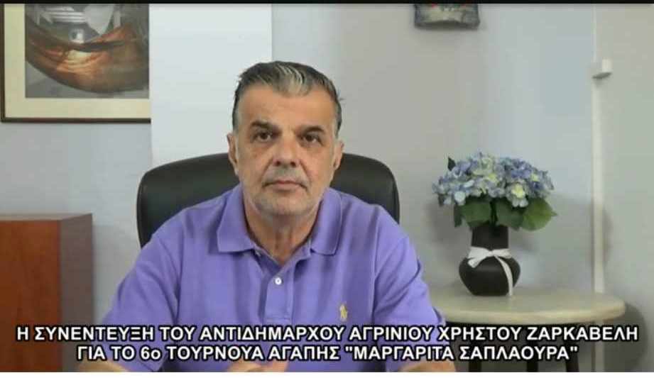 Για το 6ο τουρνουά αγάπης “Μαργαρίτα Σαπλαούρα” που διοργανώνει ο Δήμος Αγρινίου σε συνεργασία με τον Α.Ο. Αγρινίου μίλησε ο Αντιδήμαρχος Παιδείας, Πολιτισμού και Αθλητισμού του Δήμου Αγρινίου κ. Χρήστος Ζαρκαβέλης.