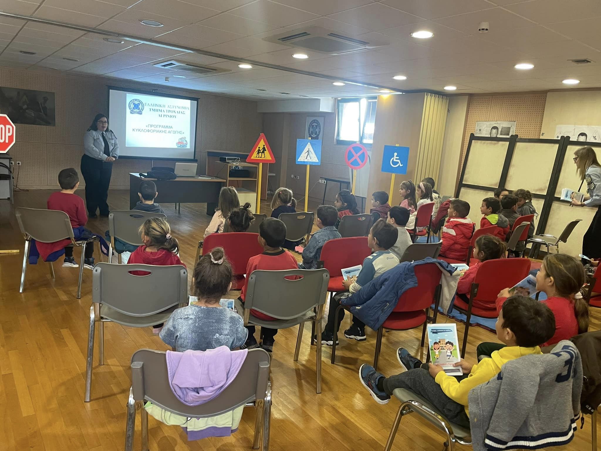 ” “Η κ. Ευτυχία Σκαμπαρδώνη με παραστατικό και ευχάριστο τρόπο εξήγησε στα νήπια τις βασικές αρχές του Κ.Ο.Κ. και τα σήματα οδικής ασφάλειας δίνοντας συμβουλές ορθής οδικής συμπεριφοράς και παίζοντας μαζί τους παντομίμα.Η δράση πραγματοποιήθηκε στην Τετάρτη 29 Νοεμβρίου 2023 και ενθουσίασε τους μικρούς μας μαθητές!” σημειώνουν στην ανακοίνωση.