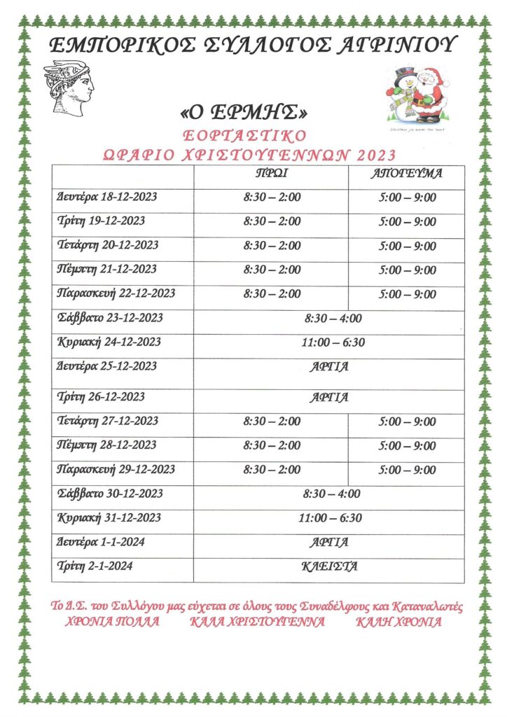 Το ωράριο των σούπερ μάρκετ την Κυριακή 24/12