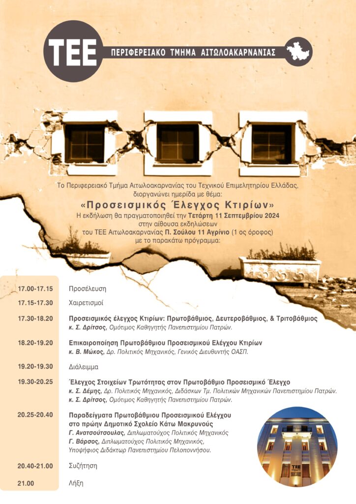 ΤΕΕ Αιτωλ/νίας: Ημερίδα προσεισμικός έλεγχος κτιρίων