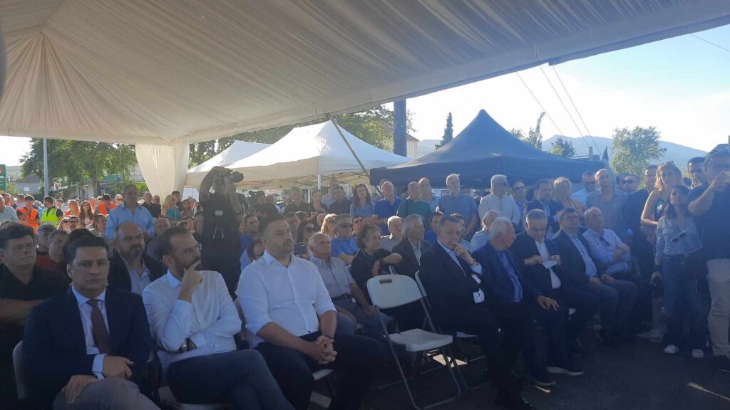 Ο κ. Σταϊκούρας συμπλήρωσε ότι η νέα γέφυρα κατασκευάστηκε μέσα σε έναν χρόνο, στο ίδιο σημείο με την παλαιά, αλλά με τις πιο σύγχρονες προδιαγραφές ανθεκτικότητας, ενώ στο έργο προβλέπεται η ανακατασκευή όλων των αναγκαίων υδραυλικών έργων προστασίας των βάθρων και διευθέτησης του ποταμού για την αντιπλημμυρική προστασία της περιοχής.