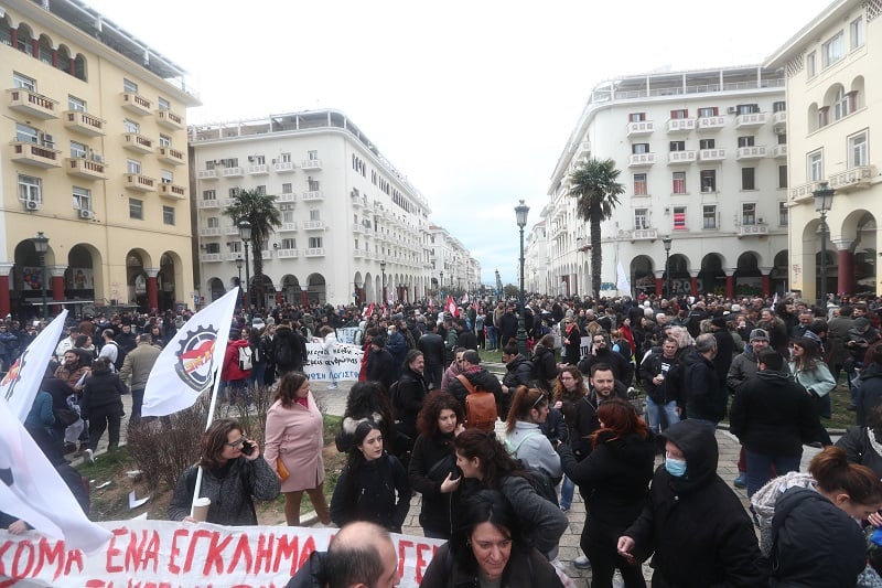 Συγκέντρωση πραγματοποιείται και σε άλλες ελληνικές πόλεις, ενώ στη Θεσσαλονίκη μαζική είναι η συμμετοχή του κόσμου στο συλλαλητήριο που πραγματοποιείται στην πλατεία Αριστοτέλους.