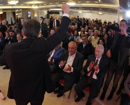 Θερμή υποδοχή επεφύλαξαν εκατοντάδες ετεροδημότες Αιτωλοακαρνάνες της Αθήνας στον Θάνο Μωραΐτη κατά την είσοδό του στην κατάμεστη αίθουσα του ξενοδοχείου Τιτάνια, όπου πραγματοποίησε πολιτική ομιλία ενόψει των εκλογών της 21 ης Μαΐου.